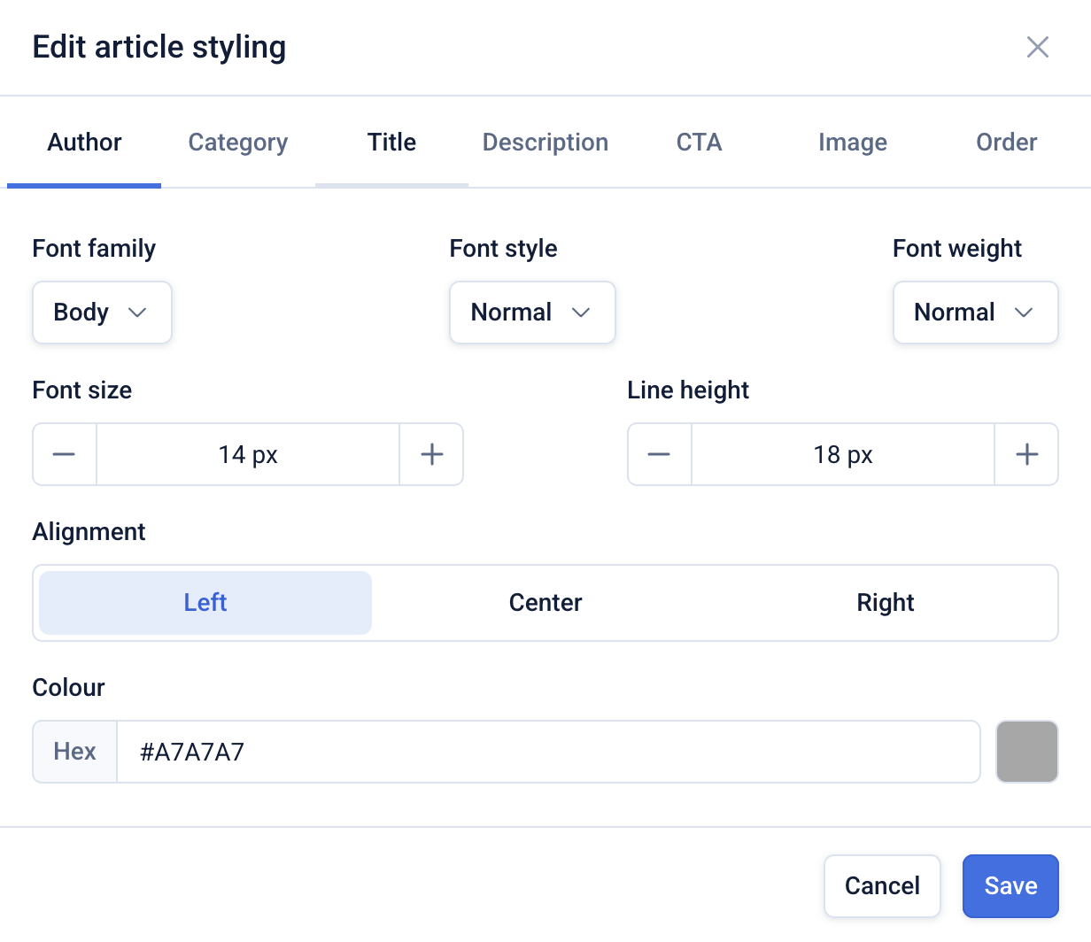 Click on the 3-dot menu for an article block and select 'Article Styling'.