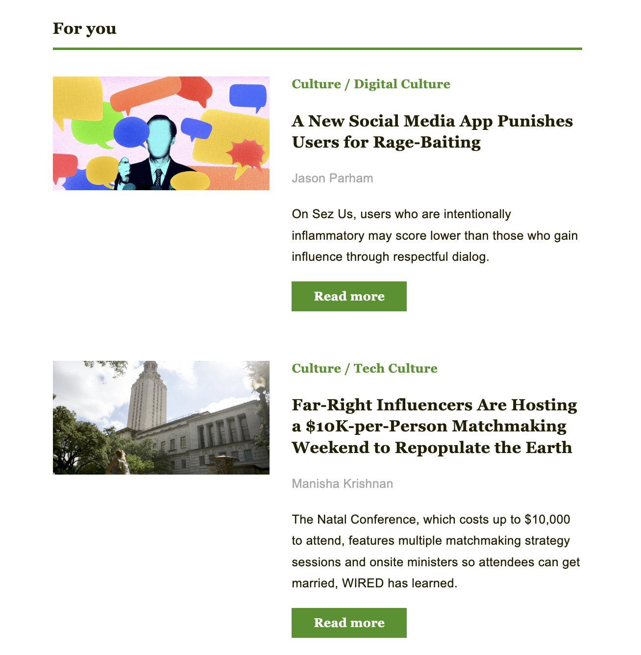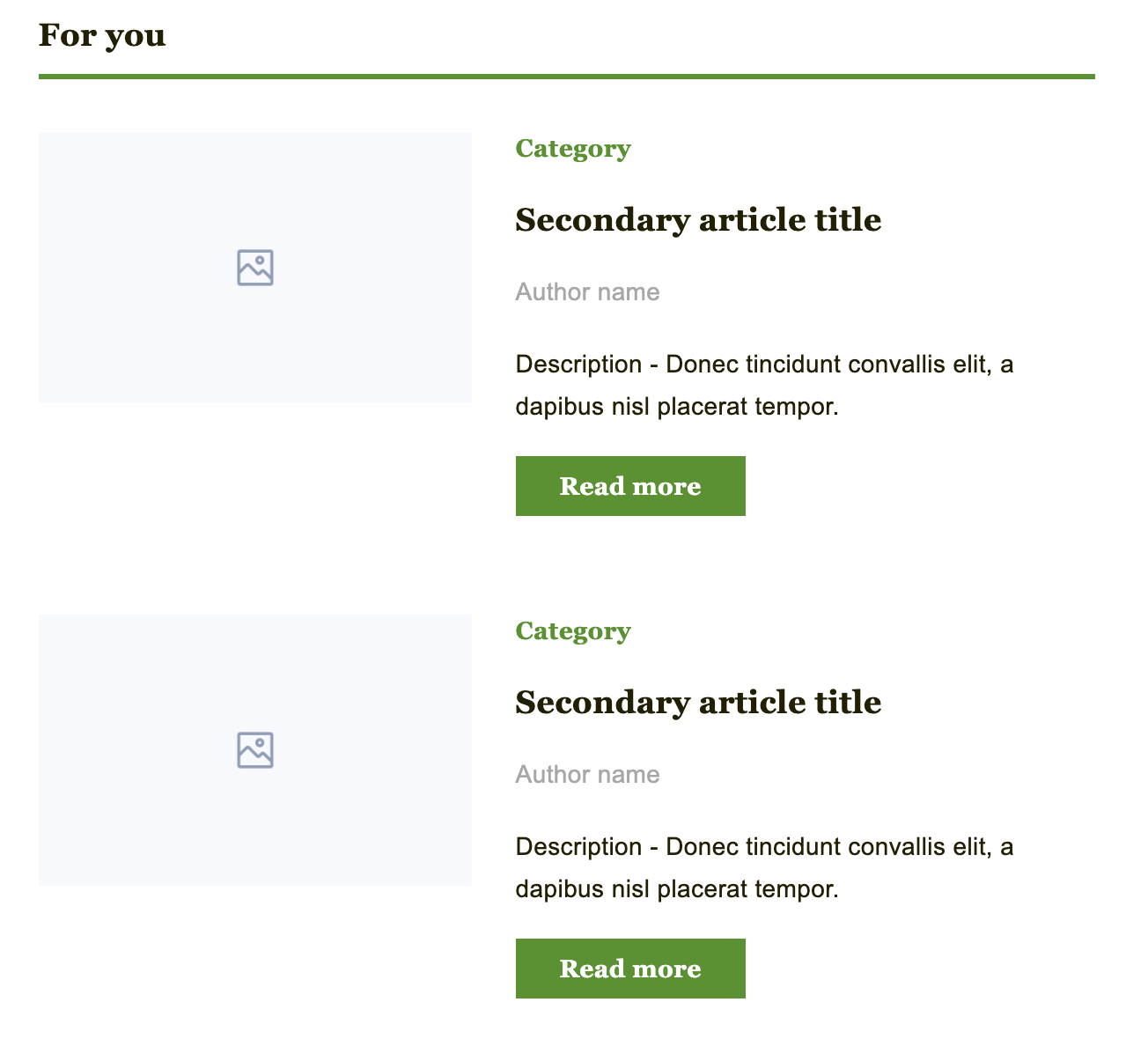 Displaying the author and category commonly features in newsletters and allows readers to quickly understand the topic of the content and who it was written by.