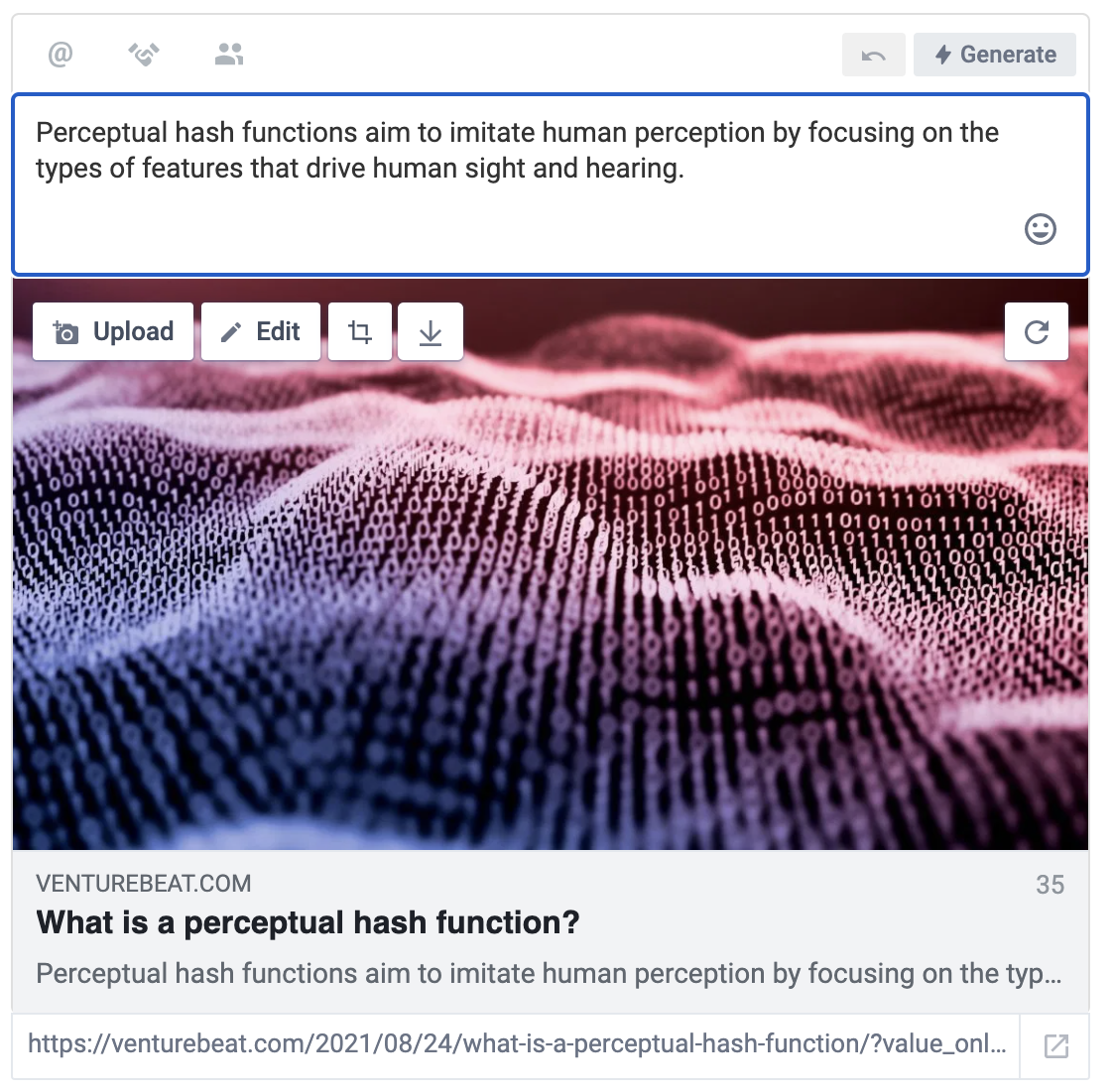 It is therefore recommended that you complete Facebook’s Domain Verification in order to be able to edit your posts through Echobox. Echobox will still be able to automate and optimize your shares if you are not domain verified, but you will not be able to customise the image, article title and description in the post until you are.