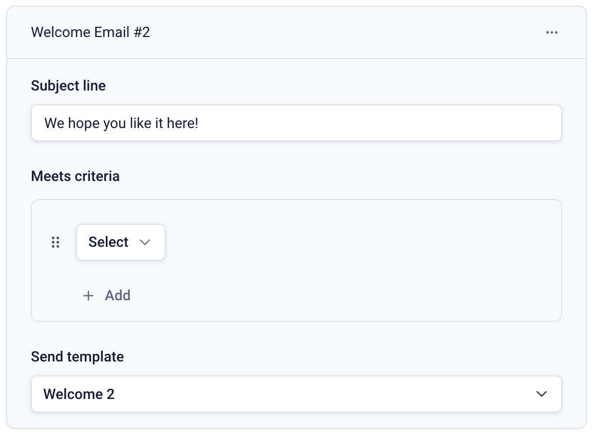 Click the 3-dot menu on the step to rename the step (if required, this label is shown on the dashboard and might help when reviewing per-step analytics) and enter the subject line for the first step.
