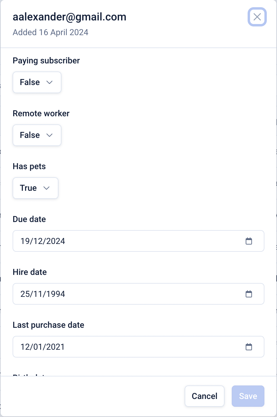 This will open a modal for the selected subscriber where you can update a field value.